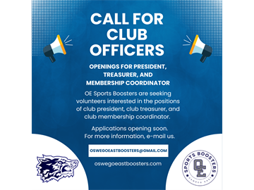 Those interested in any of these positions should attend the May 13 OE Sports Boosters meeting in Oswego East High School's LRC at 6:00 p.m. or e-mail the boosters at